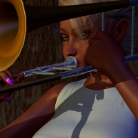 One night during Semana Deligacao, Bruna gives a trombone a good blow.