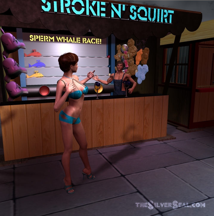 Maelie's looking fantastic in a cute little ensemble from our "Stroke" collection. And what better place to show it off than the Stroke'n'Shoot out on the Carniville Park Midway. Maelie's got a winning look that's hard to beat. We're sure she'll find plenty young men (and more than a few older men) that will step up to the counter and win her a big fat teddy! And if not, Maelie can do it on her own!