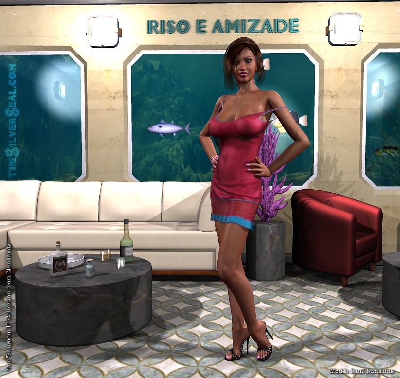 Sami looks like the life of the party tonight at the famed Underwater Ballroom as she steps out in this slinky little dress from our Mankandy Collection. And if all eyes aren't on her, they will be if that strap, powered by a few shots of Mr. Bone's Cocunut Rum, slips a little more!