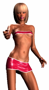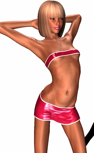 Love! That's what everyone will do when they see you strutting your stuff in this little set! Love you! Just like they love Quenna here, who's stepping out in style. The outfit comes in several sizes, but we cannot guarantee that the bandeau will stay aloft upon some of our more full-figured women. (It may not stay aloft on Quenna, either, but that's a different story.)